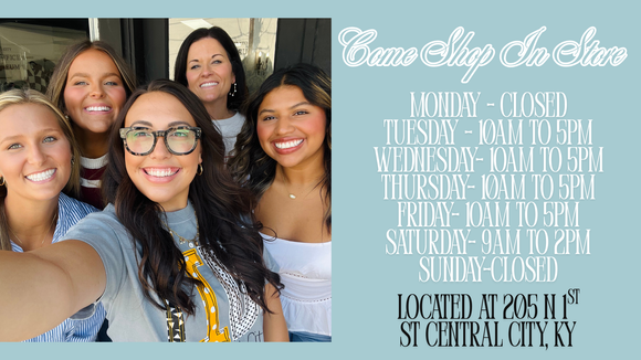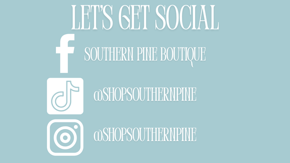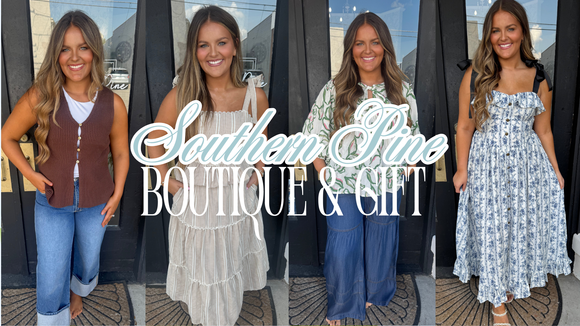 Welcome to Southern Pine Boutique's online store. We are so excited to bring you cute, comfortable, trendy clothing and jewelry to make you feel confident and beautiful. If you would like to shop with us in person we are located at 205 North first St. Central City, KY. Happy shopping!