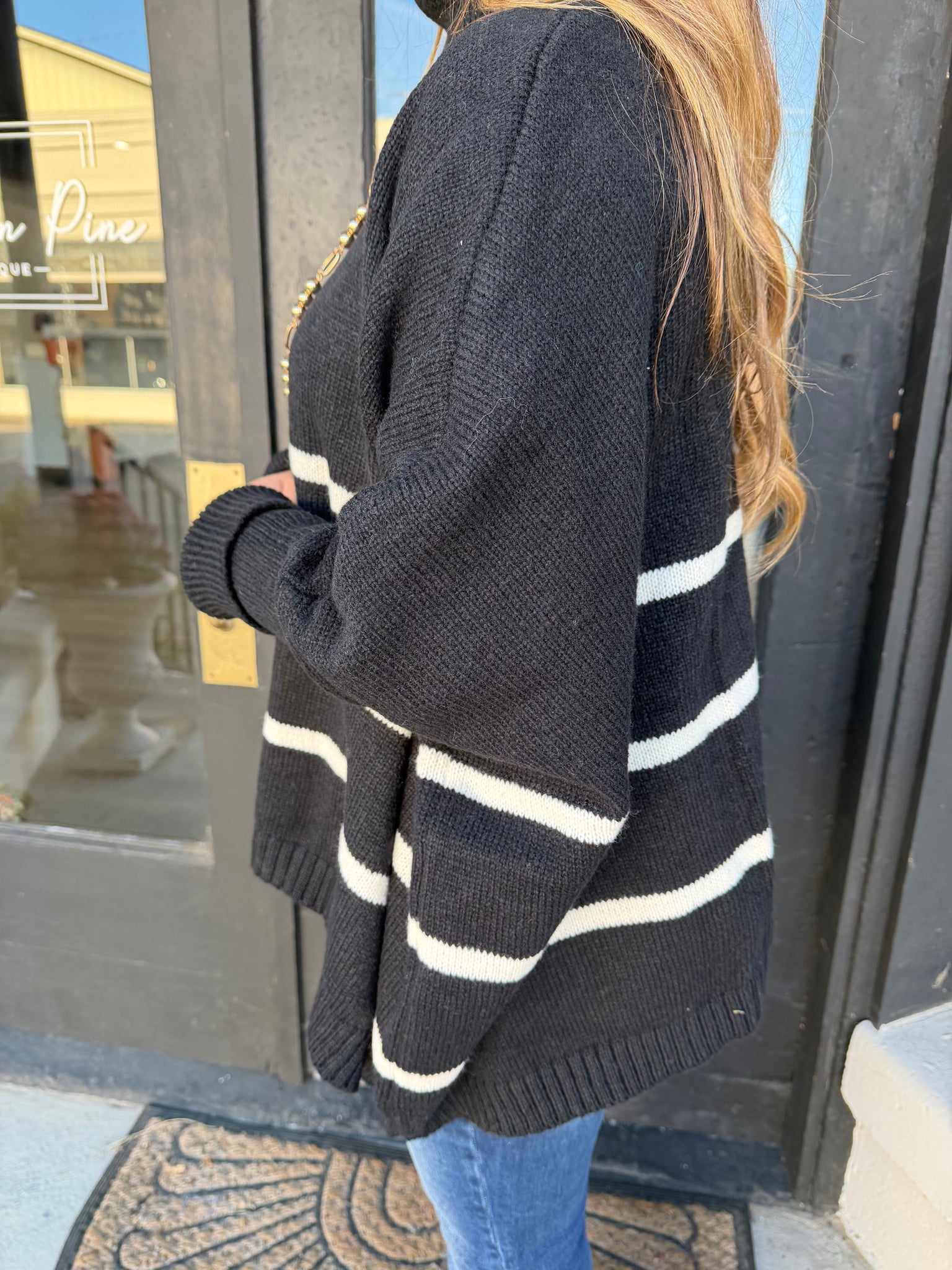 Black & white striped knit sweater