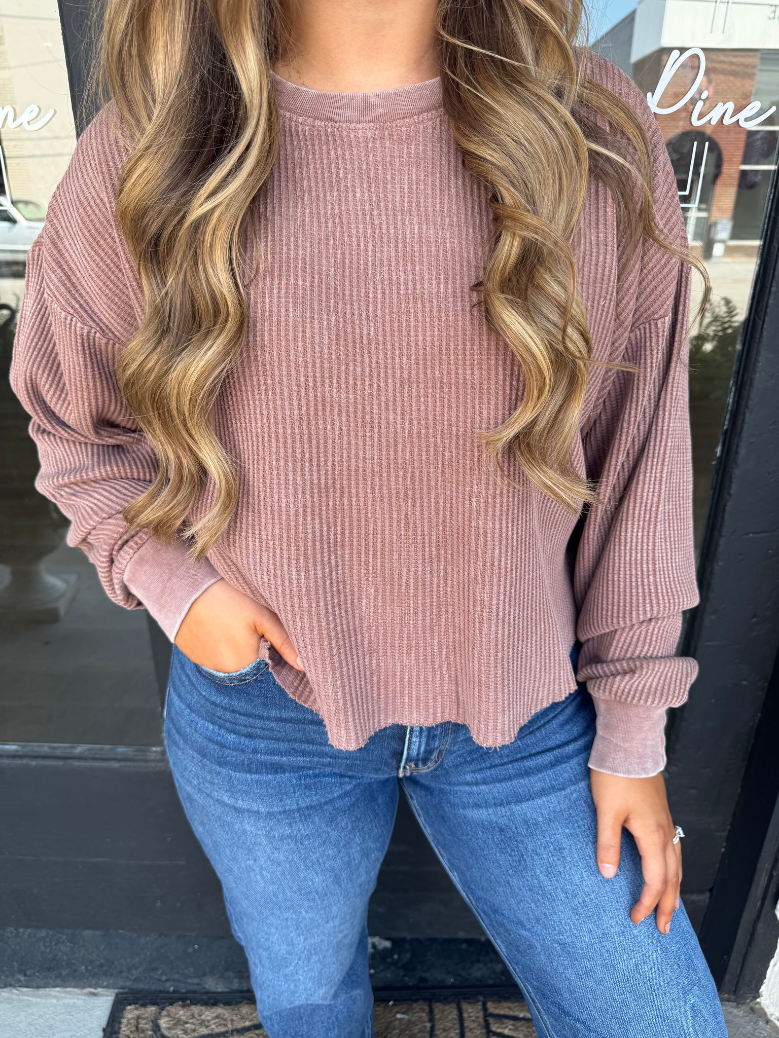 Chestnut waffle knit cropped top