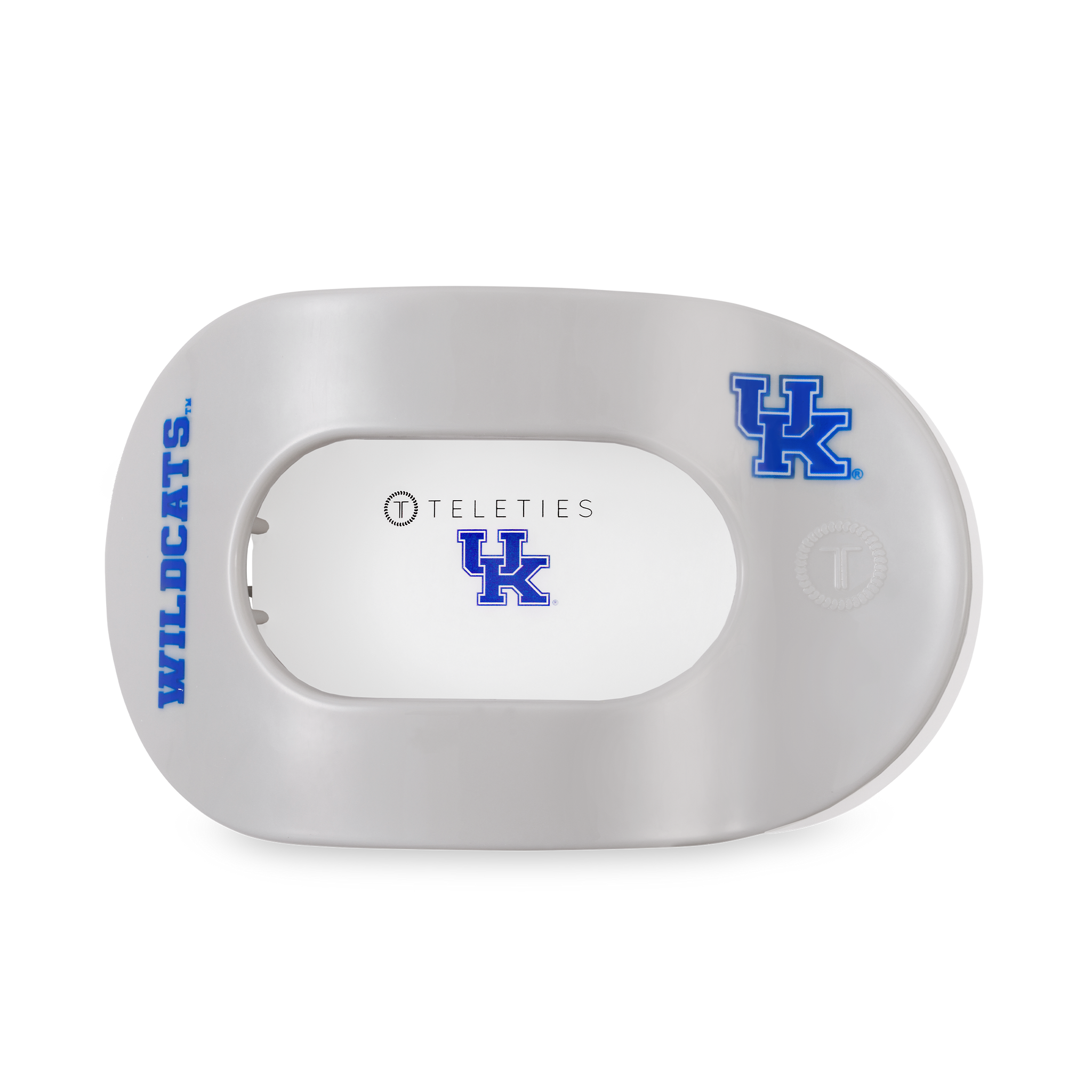 Lay flat and relax with the new TELETIES University of Kentucky, Go Big Blue! Large Flat Round Hair Clip in Gray and Blue. This hair clip is designed to allow you to lay back flat, do yoga, or sit comfortably in a seat with a headrest, and it is made with the same material that is nearly unbreakable. Shop your favorite University of Kentucky hair accessories now! Go Big Blue!
