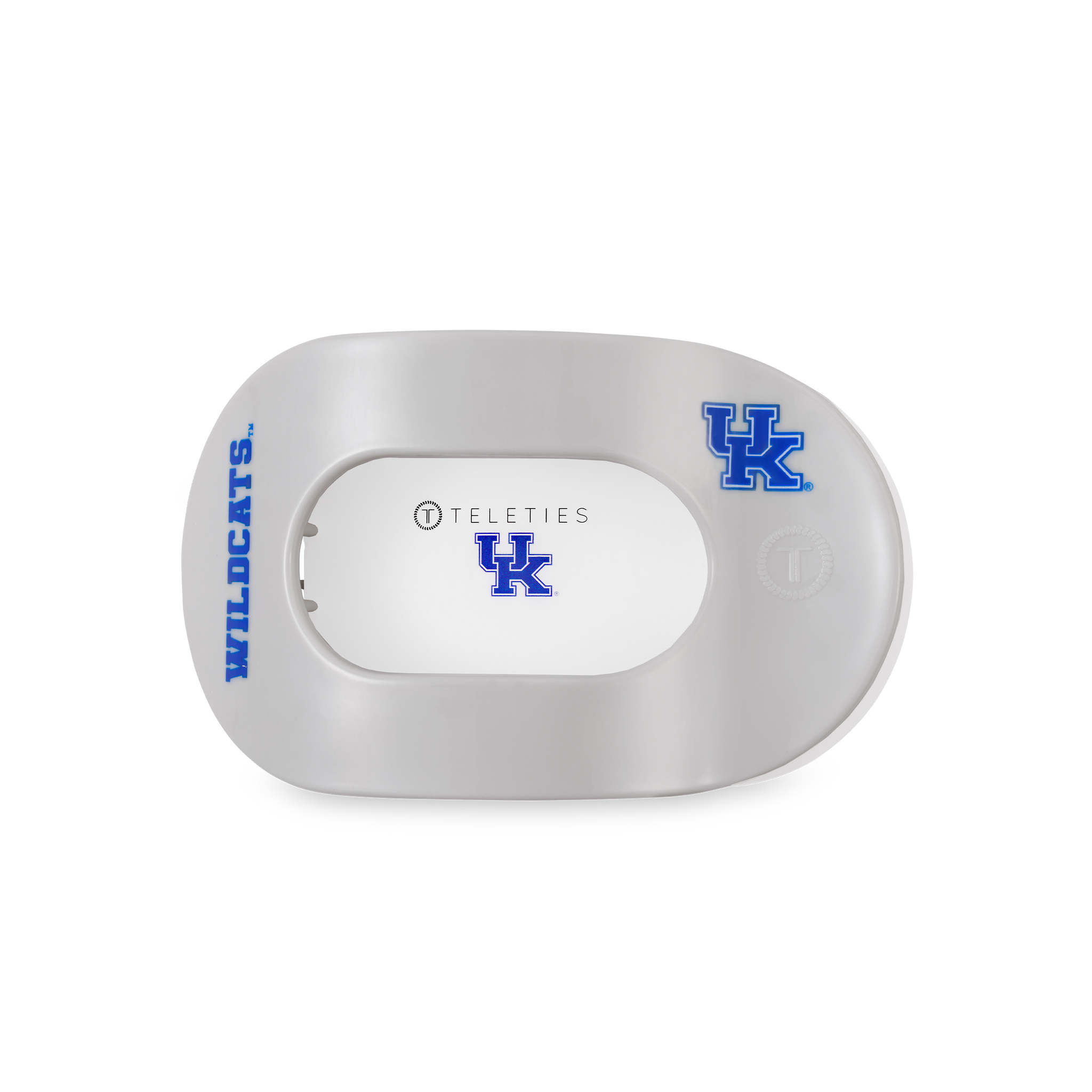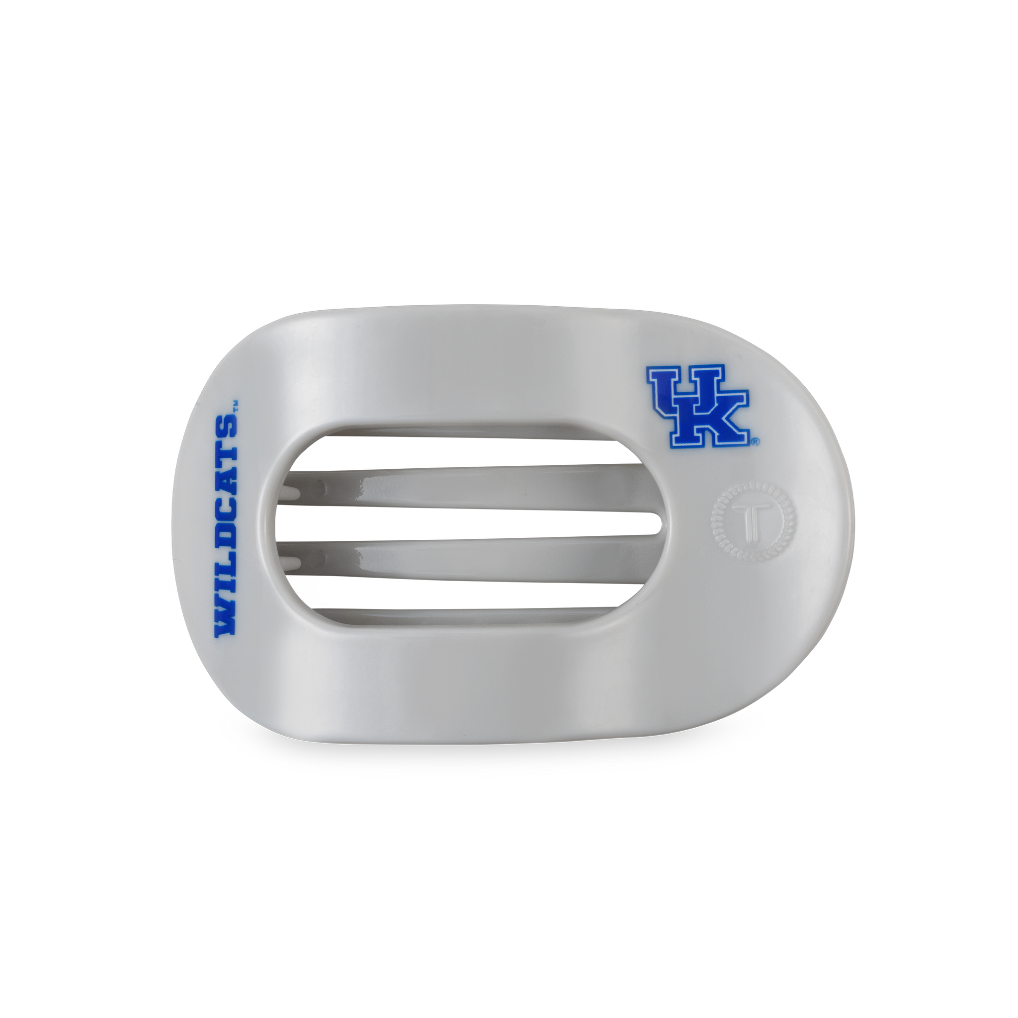 Lay flat and relax with the new TELETIES University of Kentucky, Go Big Blue! Medium Flat Round Hair Clip in Gray and Blue. This hair clip is designed to allow you to lay back flat, do yoga, or sit comfortably in a seat with a headrest, and it is made with the same material that is nearly unbreakable. Shop your favorite University of Kentucky hair accessories now! Go Big Blue!
