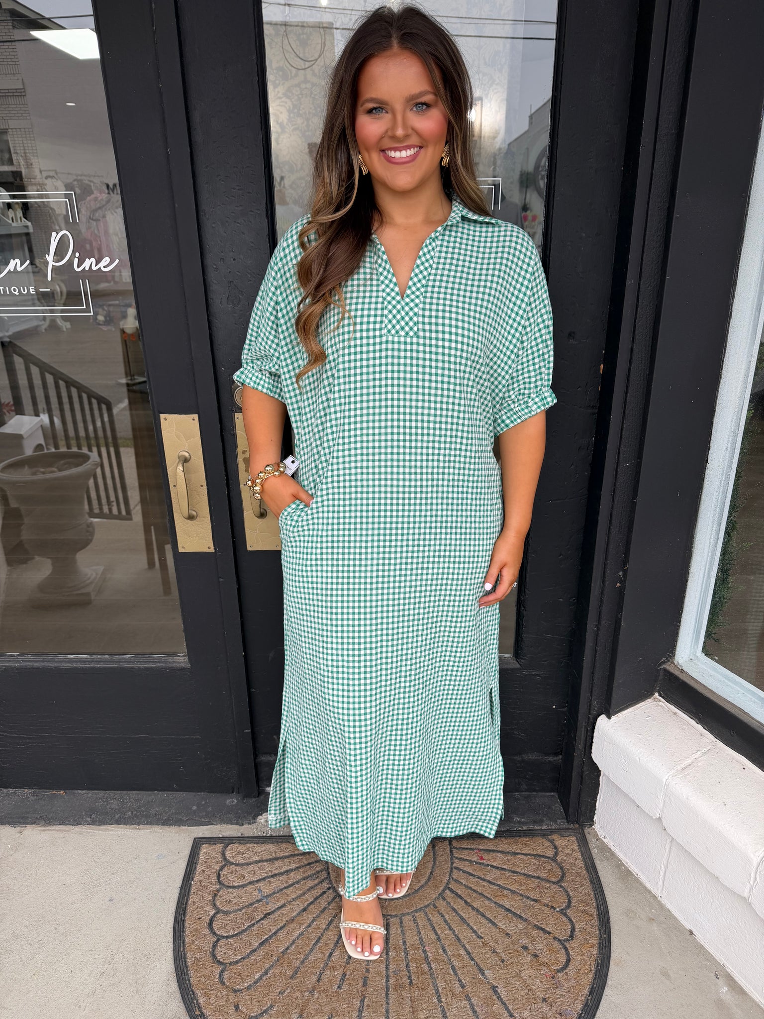 Green gingham maxi dress