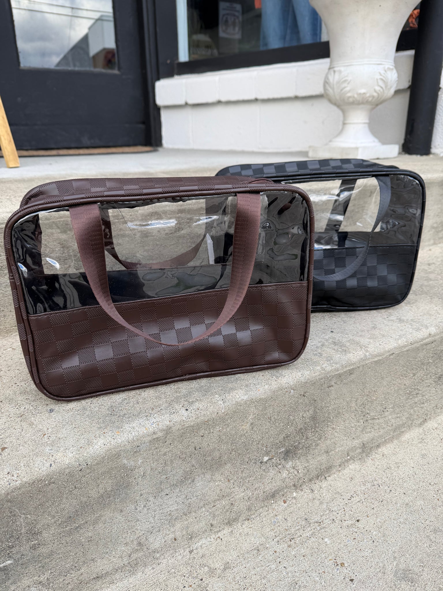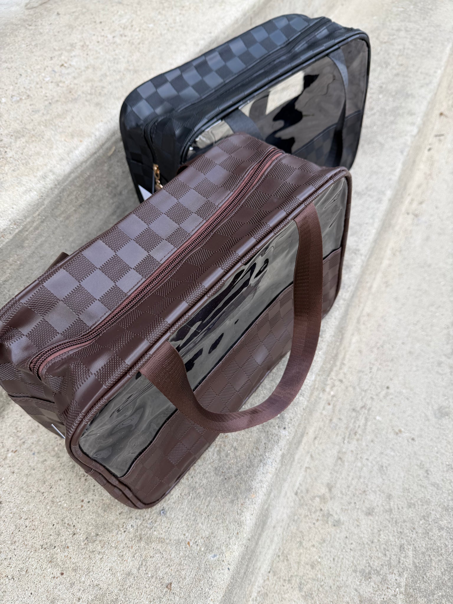 -CHECKERED MONOGRAM & CLEAR TRAVEL BAG