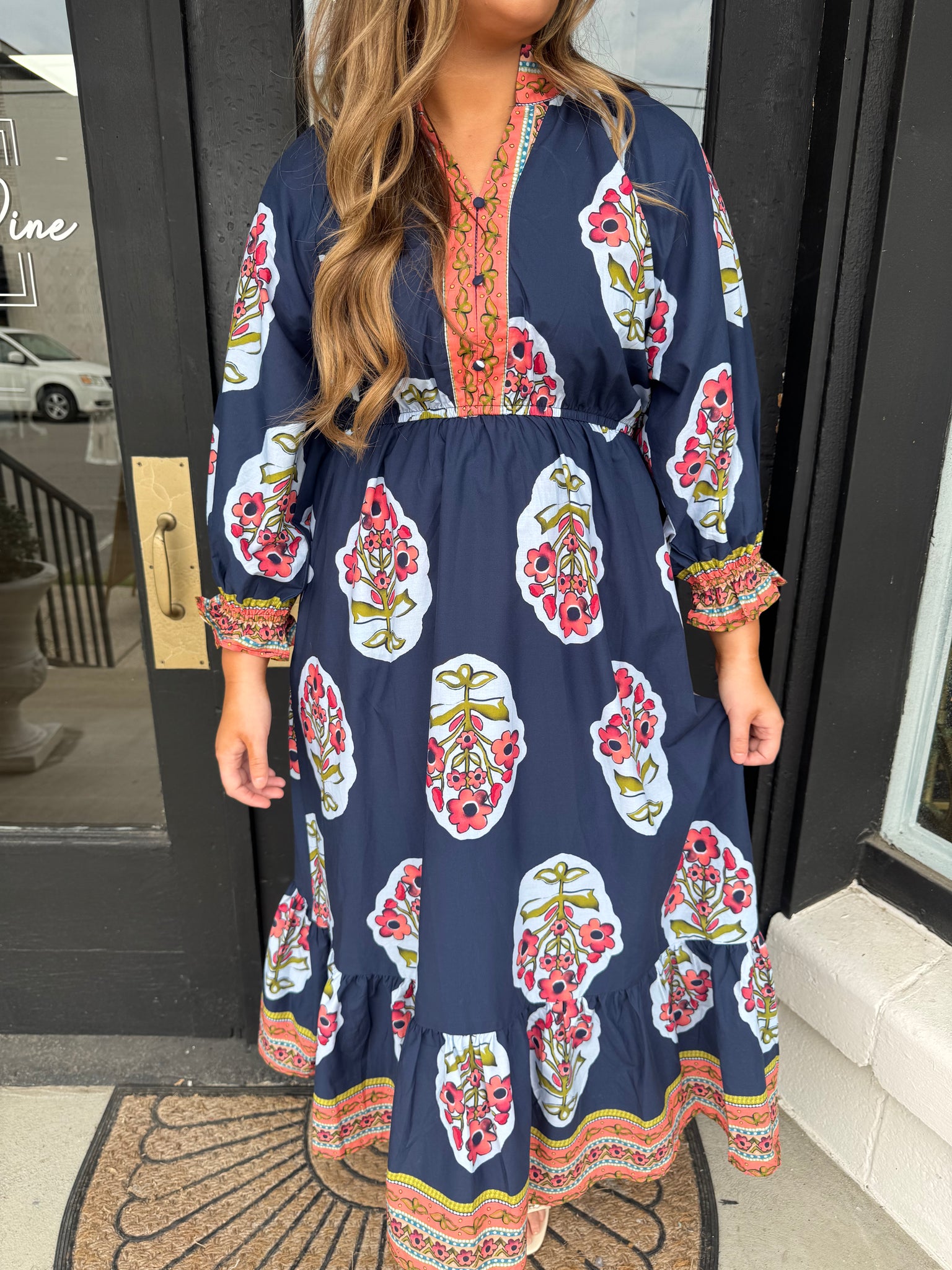 Navy boho floral dress