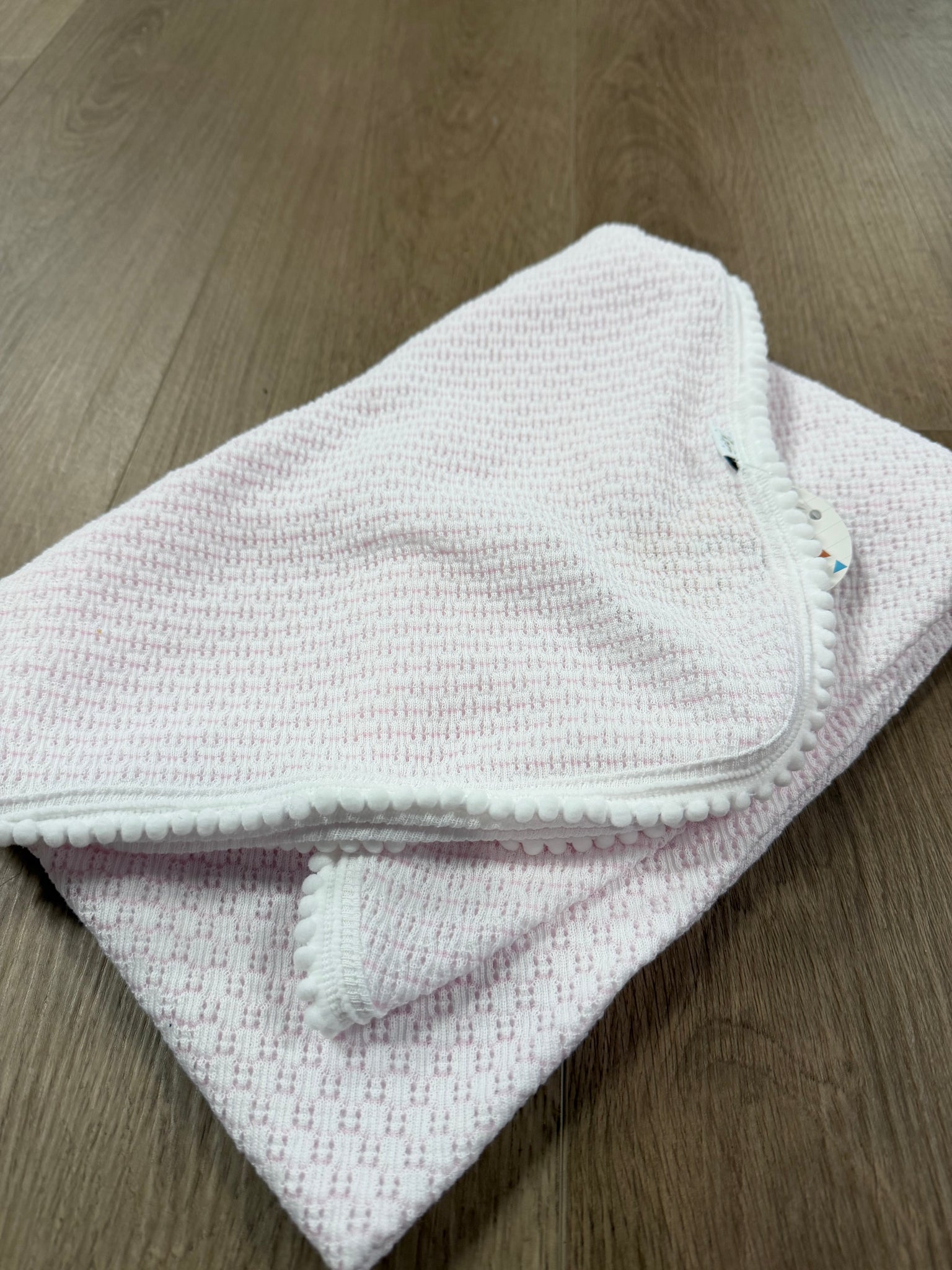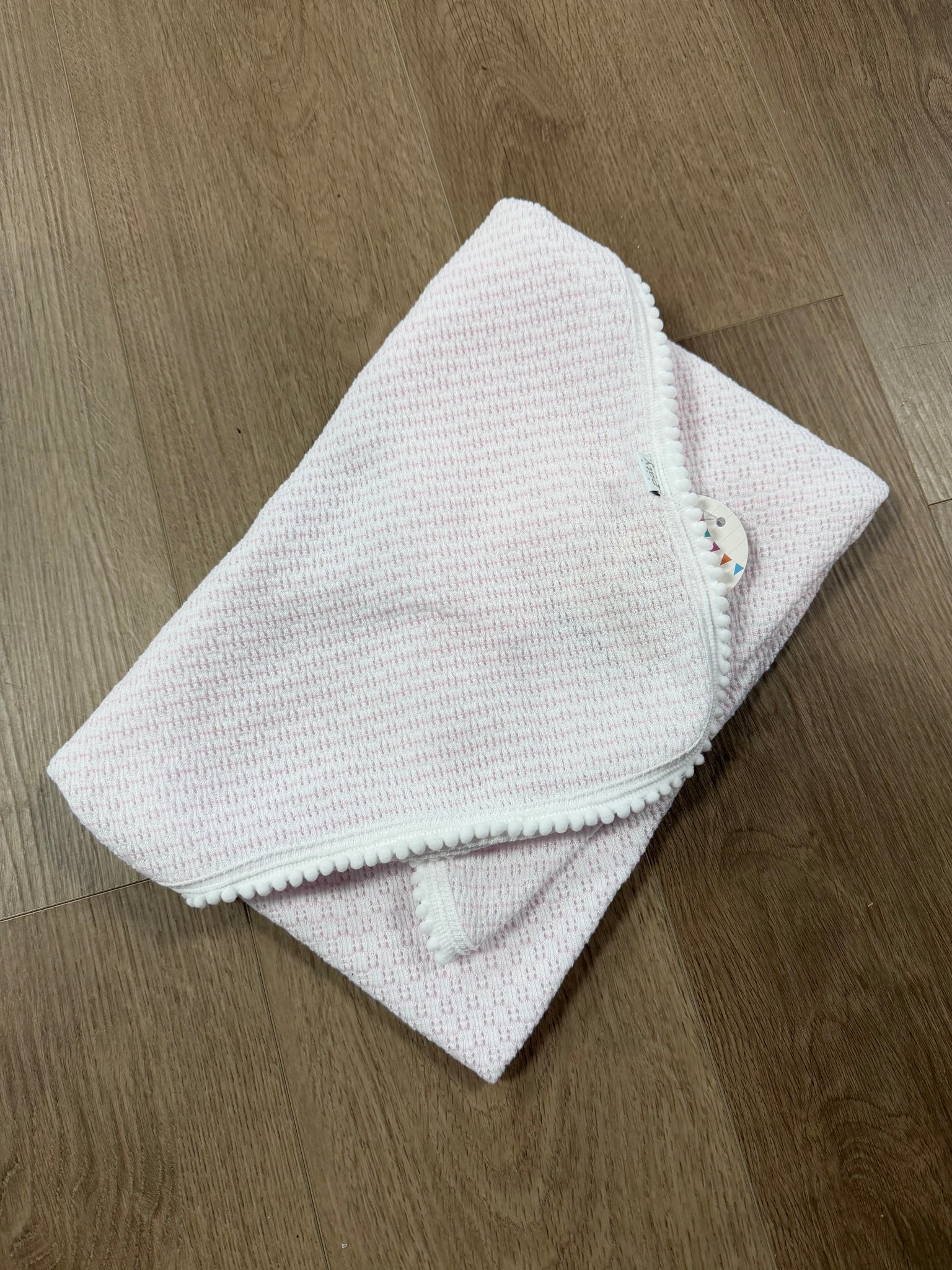 Paty Knit Blanket with Pom Pom Trim #307POM: Pink and White