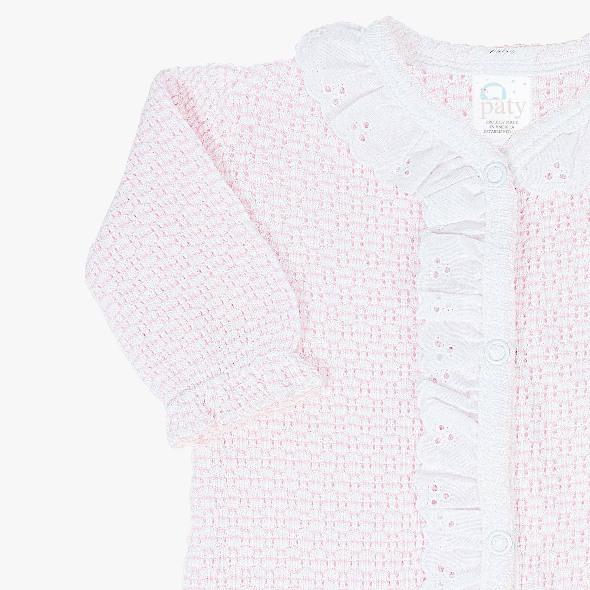 Paty Knit Footie with Eyelet #217E: Pink / Newborn