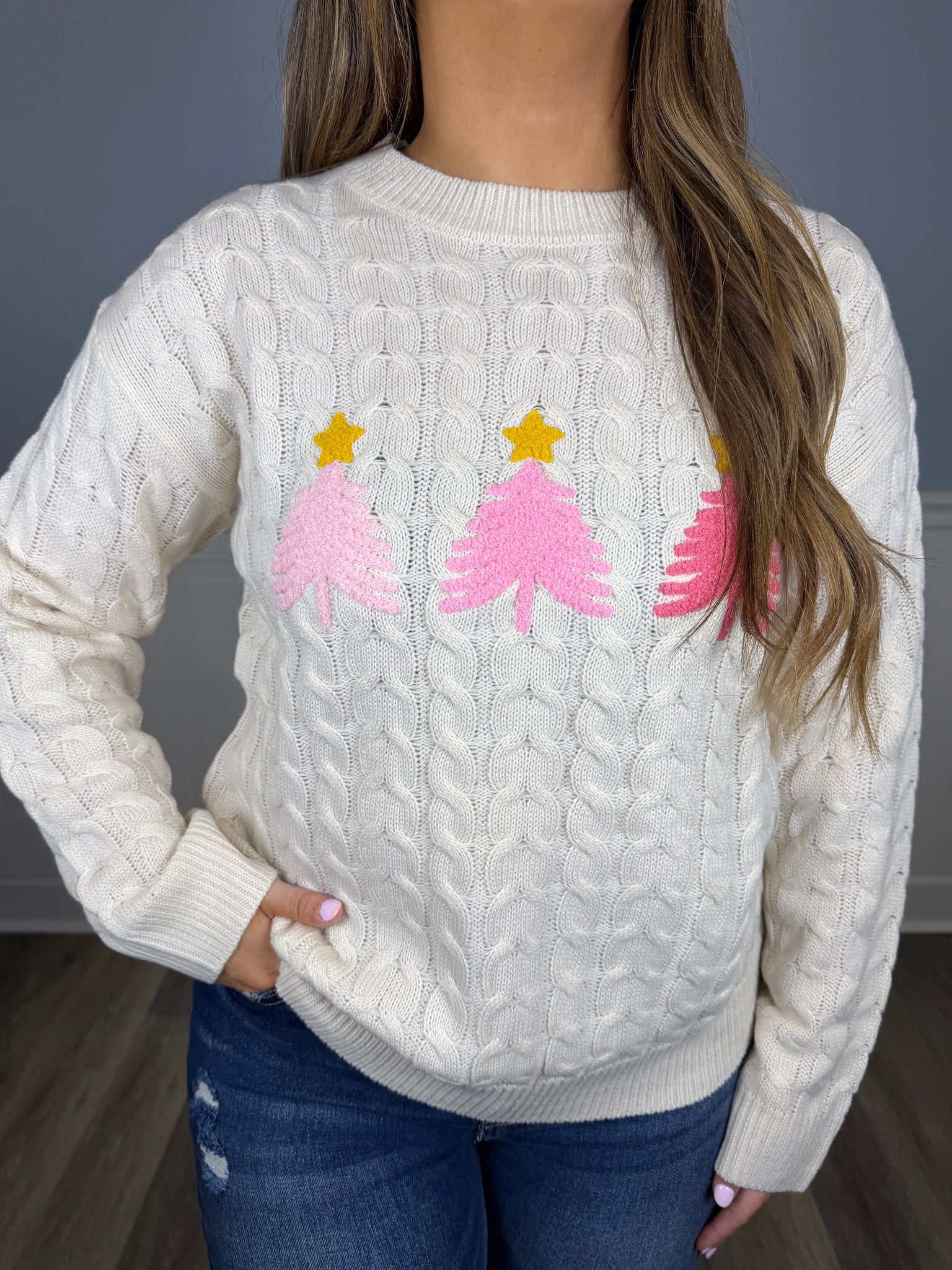 Pink tree sweater
