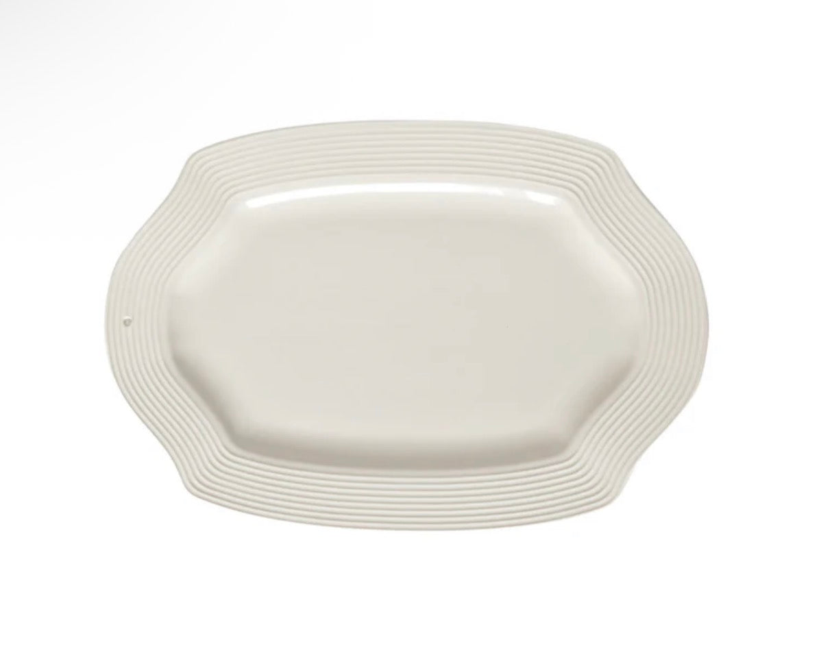 elegant and refined! the stoneware pretty platter’s artful corners and pinstriped edges make every gathering feel effortlessly stylish.