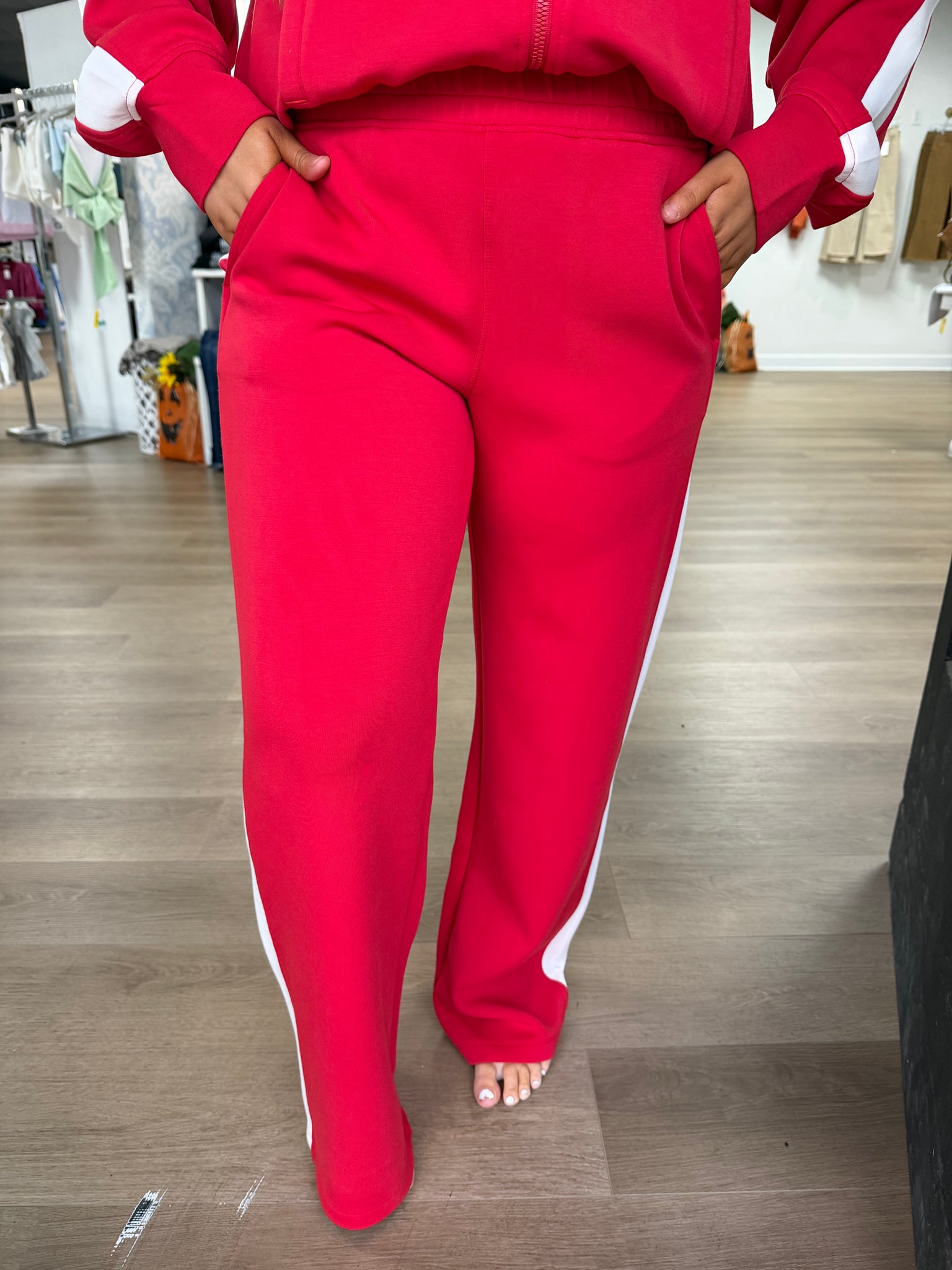 Scuba side stripe pants- red/cream